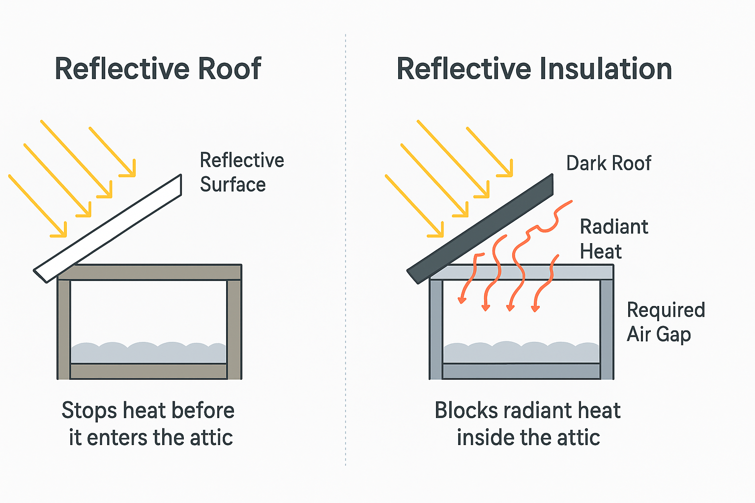 Important Distinction: A reflective roof stops heat before it enters your attic. Reflective insulation works inside the attic. The roof is your home’s first and best line of defense against the sun.